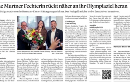 Le soir du 1er octobre 2025, le Rotary Club de Morat – Murten a eu le plaisir d’organiser la remise annuelle du prix et, avec les délégués des autres Rotary Clubs participants, de célébrer sa lauréate. Louna Maïga, une gymnasienne de 19 ans, originaire de Morat, est membre du club d’escrime de Bern...